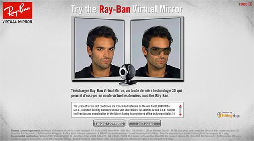 pour les simulateurs de réalité augmentée de Oakley, Vuitton, Kriss, Afflelou, Rayban, Persol, Vogue, Ferragamo, Chanel, Versace, Prada, DKNY, D&G.