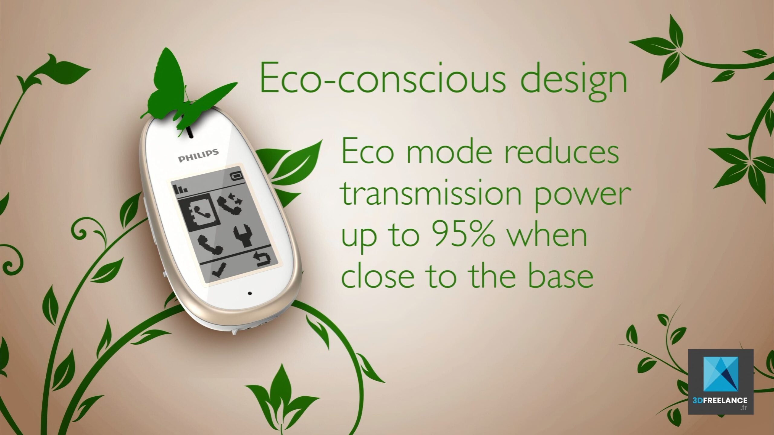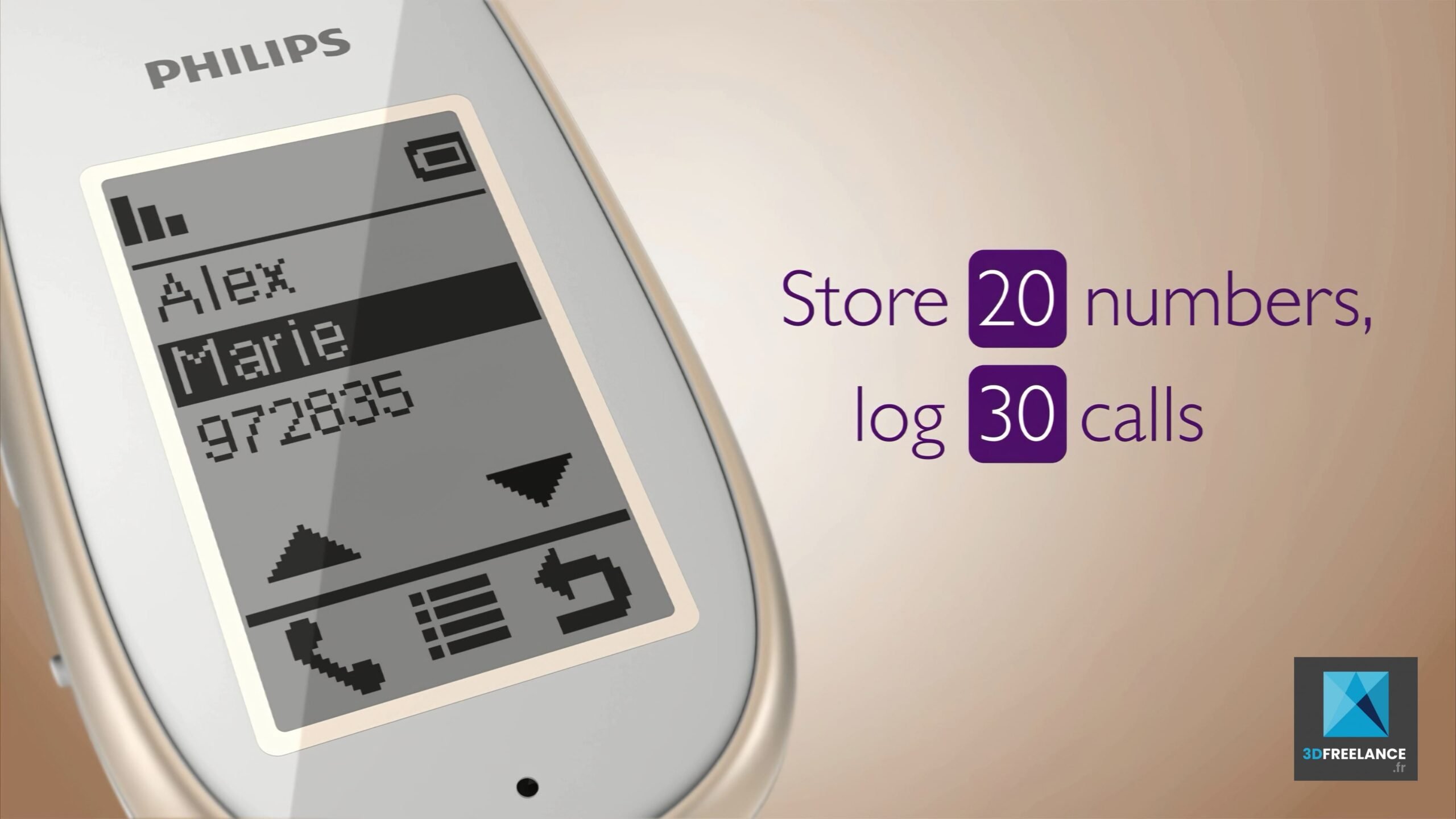 Réalisation d’un film produit en images de synthèse 3D pour un téléphone Philips. Création d’une animation 3D de produit pour le téléphone PHILIPS EGG MT3120. Film produit en images de synthèse 3D. Téléphone sans fil. L’animation 3D a pour but de présenter aux clients les fonctionnalités du téléphone. L’animation 3D produit a été calculée au format MP4 HD1080p. Style dynamique et moderne.