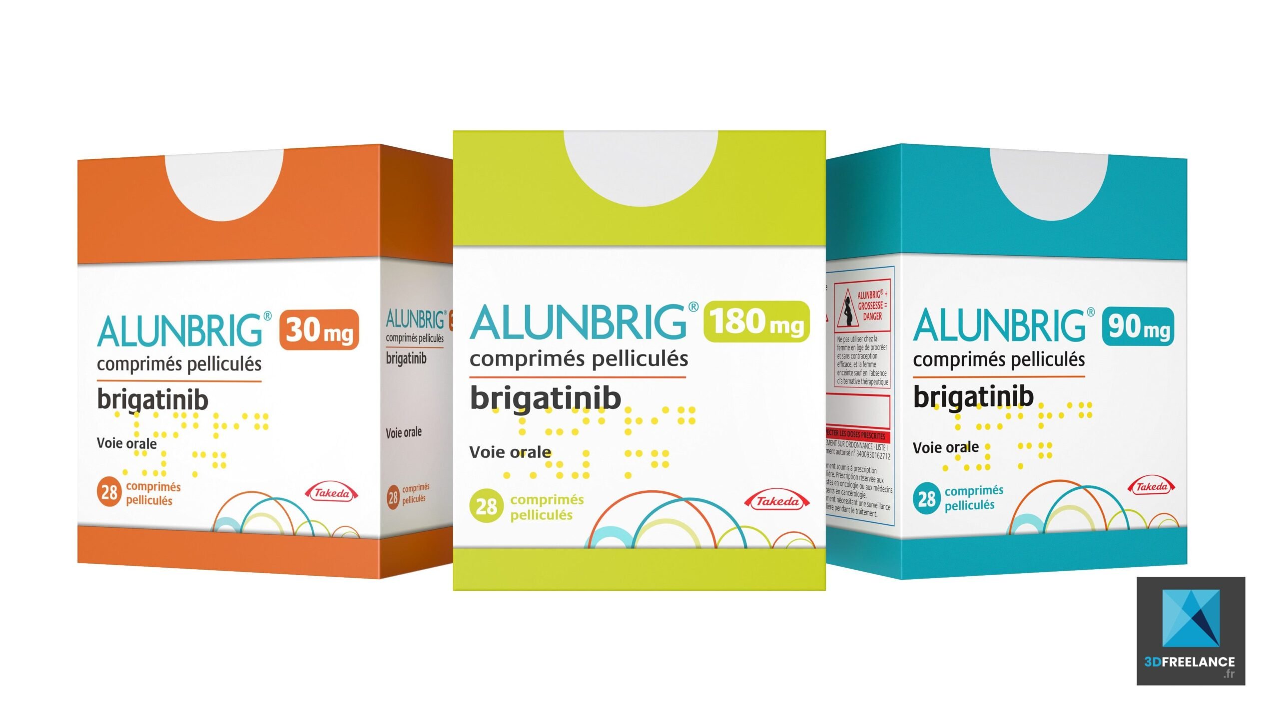 Création de packshots produits pour un laboratoire pharmaceutique. Le produit a été modélisé en 3D en rendu de manière photoréaliste type studio blanc. Modélisation 3D de 3 packshot de produits pharmaceutiques pour la commercialisation.