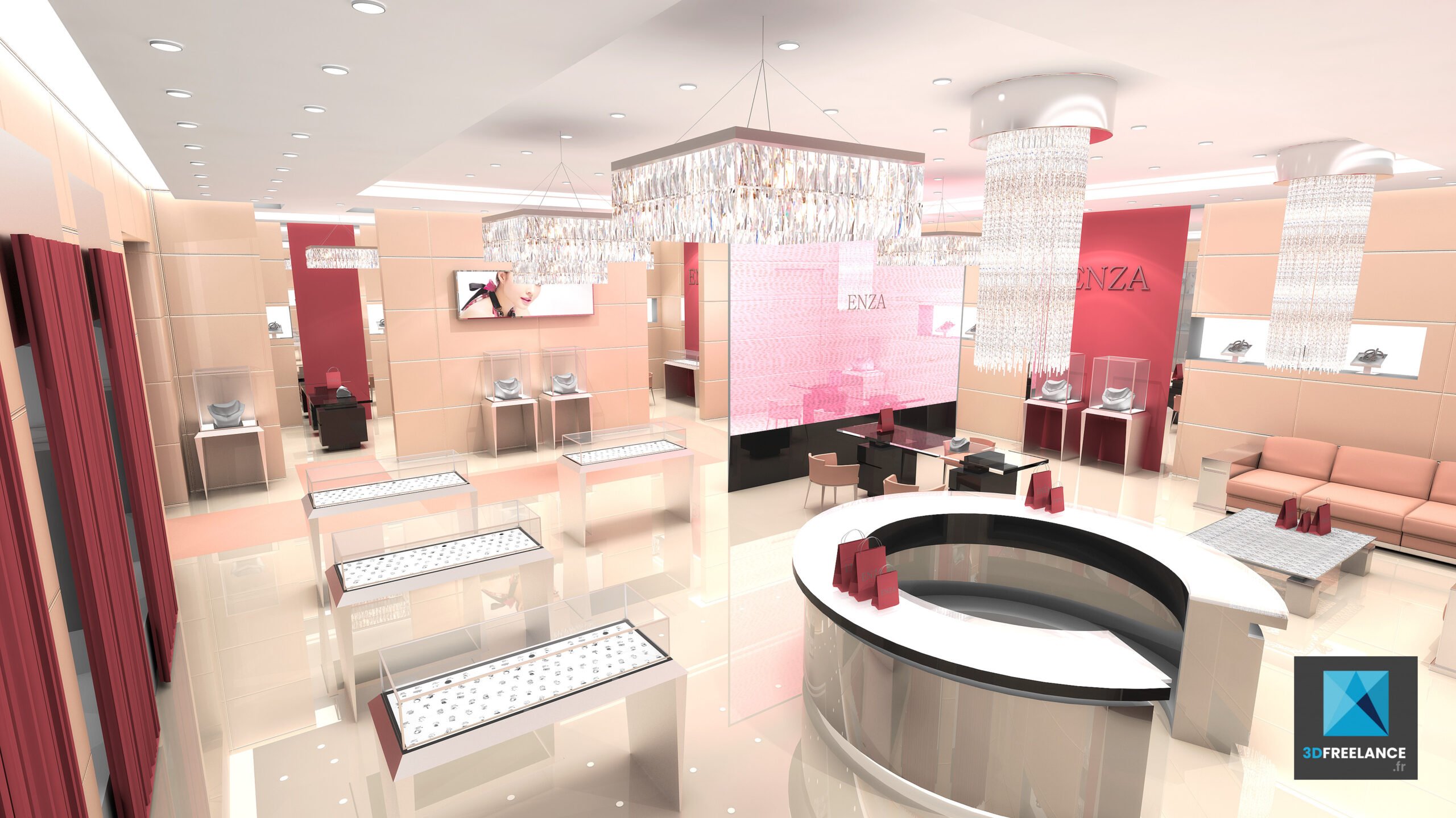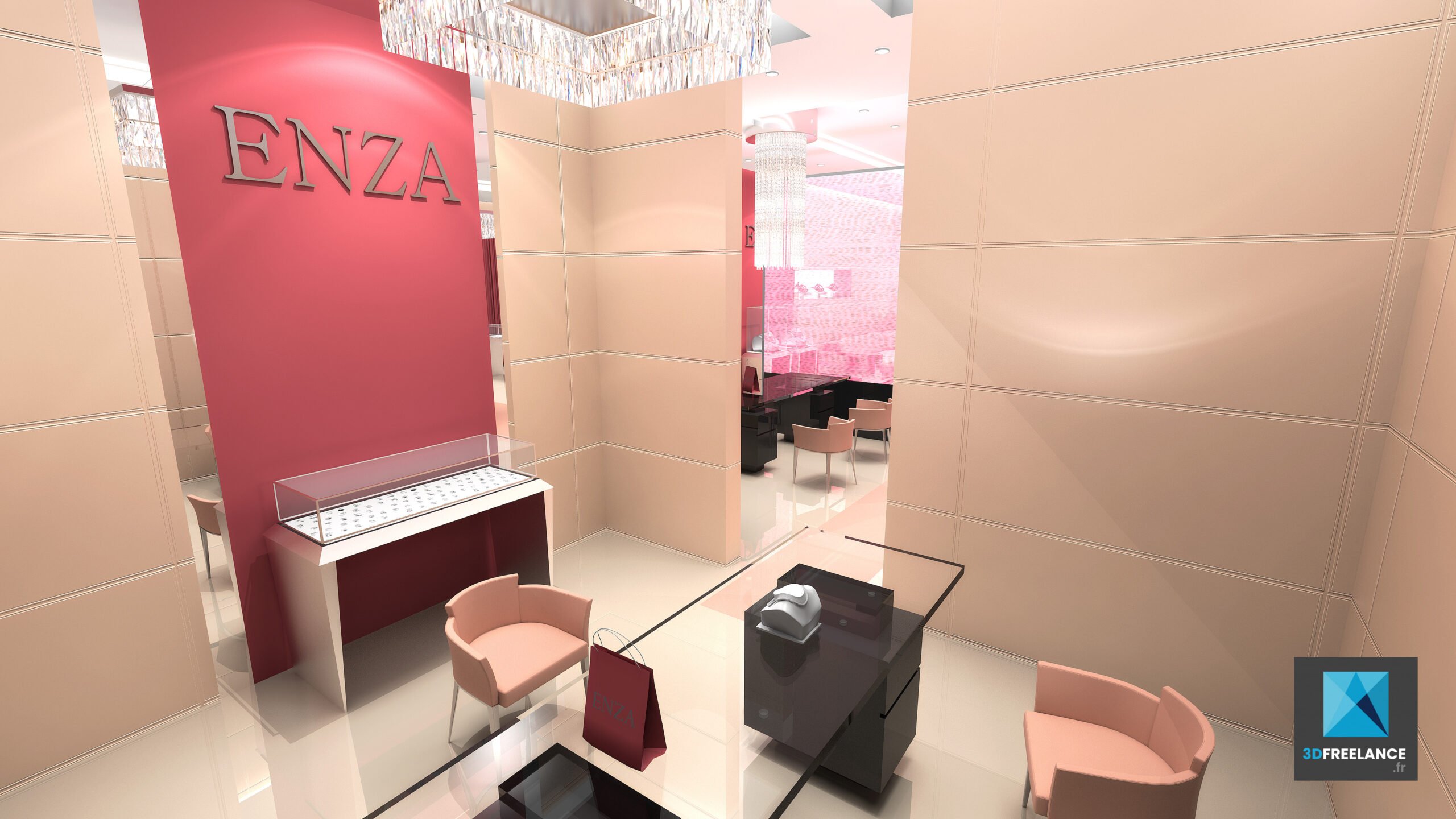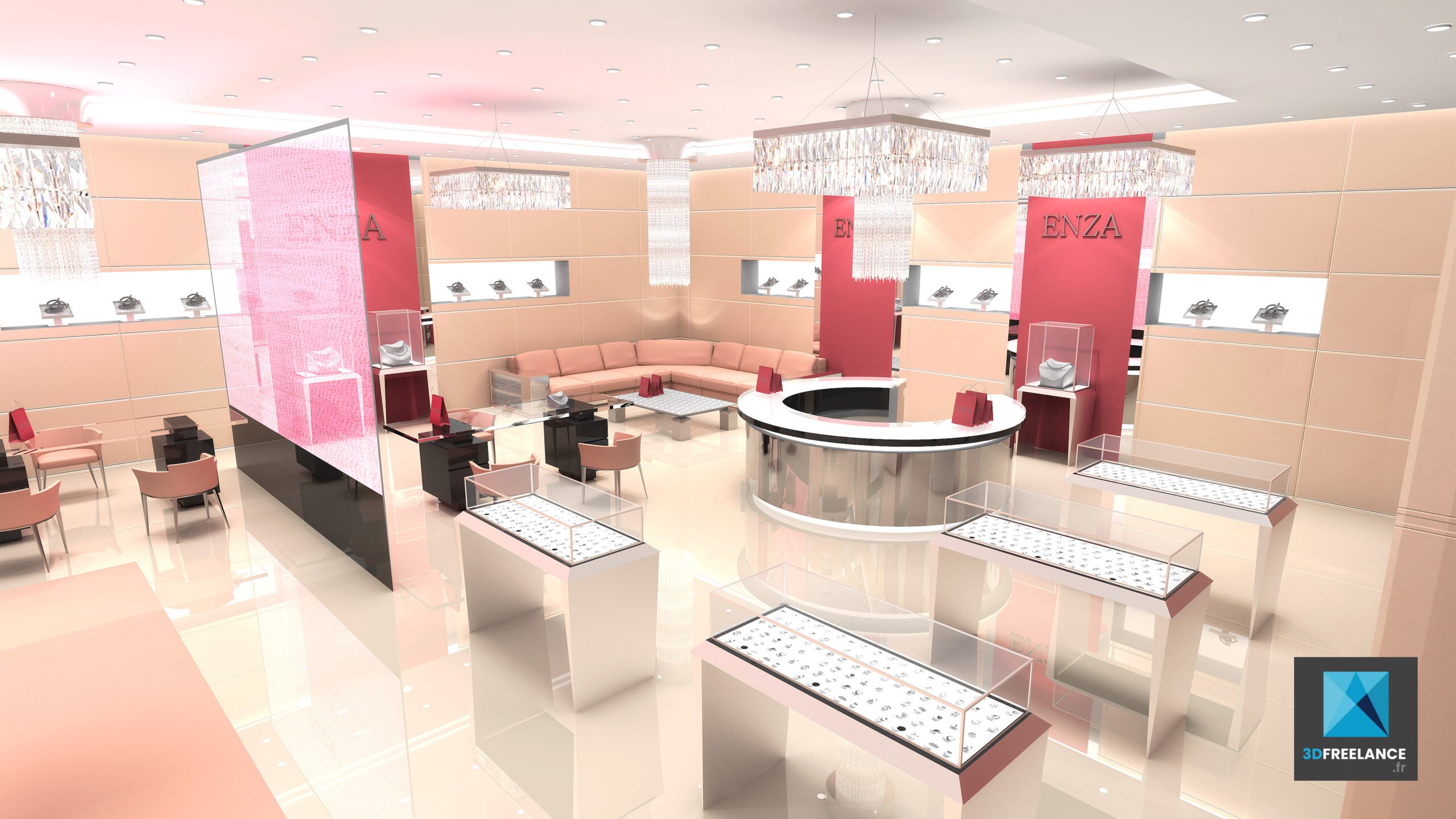 Création complète d’une boutique de luxe à Hong Kong. Travail sur l’agencement des espaces, le design d’intérieur, les matériaux et l’ambiance lumineuse. Bijouteries ENZA Hong Kong, création complète du magasin. Agencement d’une bijouterie. Travail sur l ‘agencement commercial. Décoration d’intérieur et aménagement. Choix des matières et travail sur l’éclairage. Designer de boutiques de luxe. Design d’une boutique – Création de boutiques et magasins. Design de magasin.