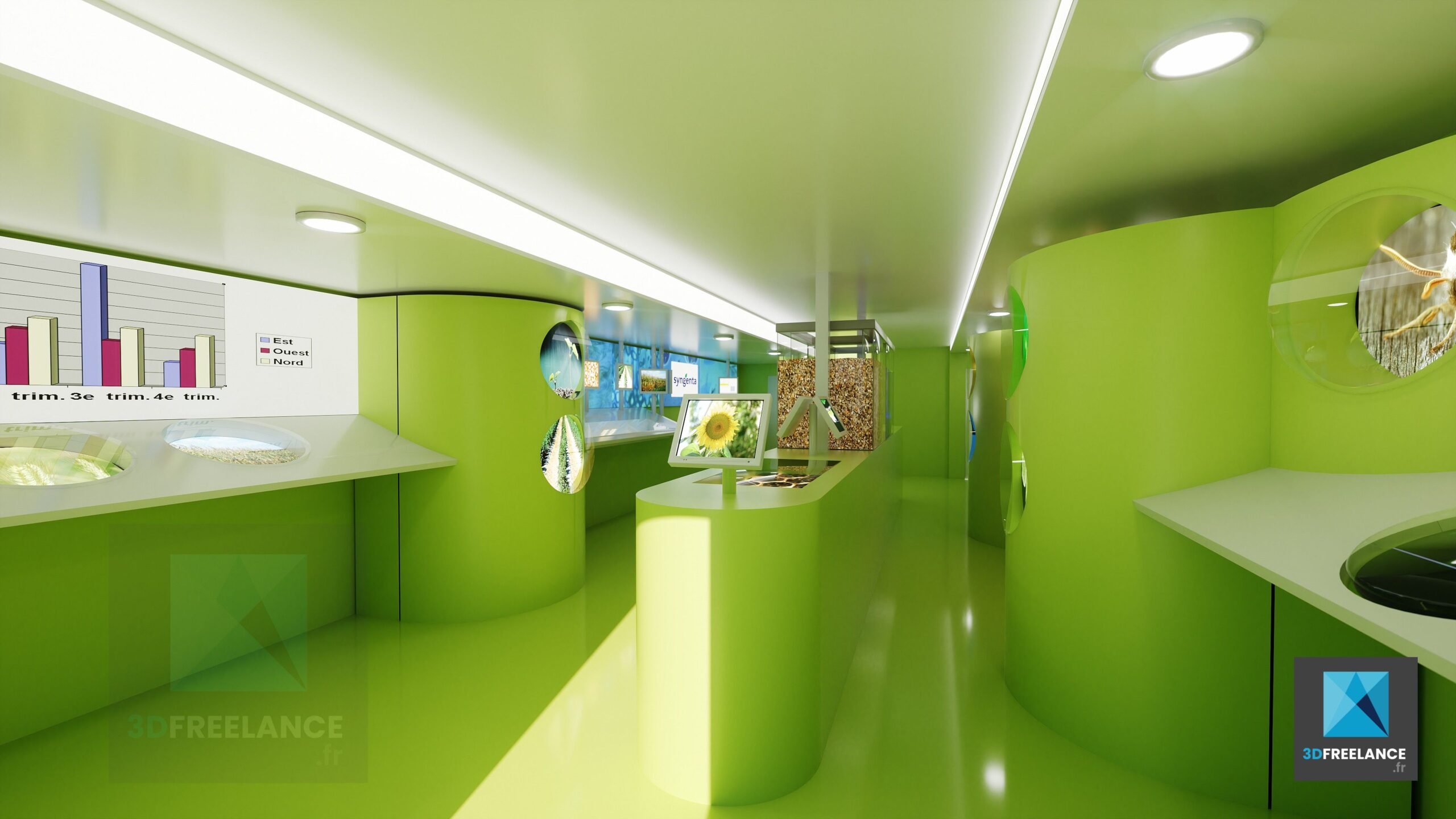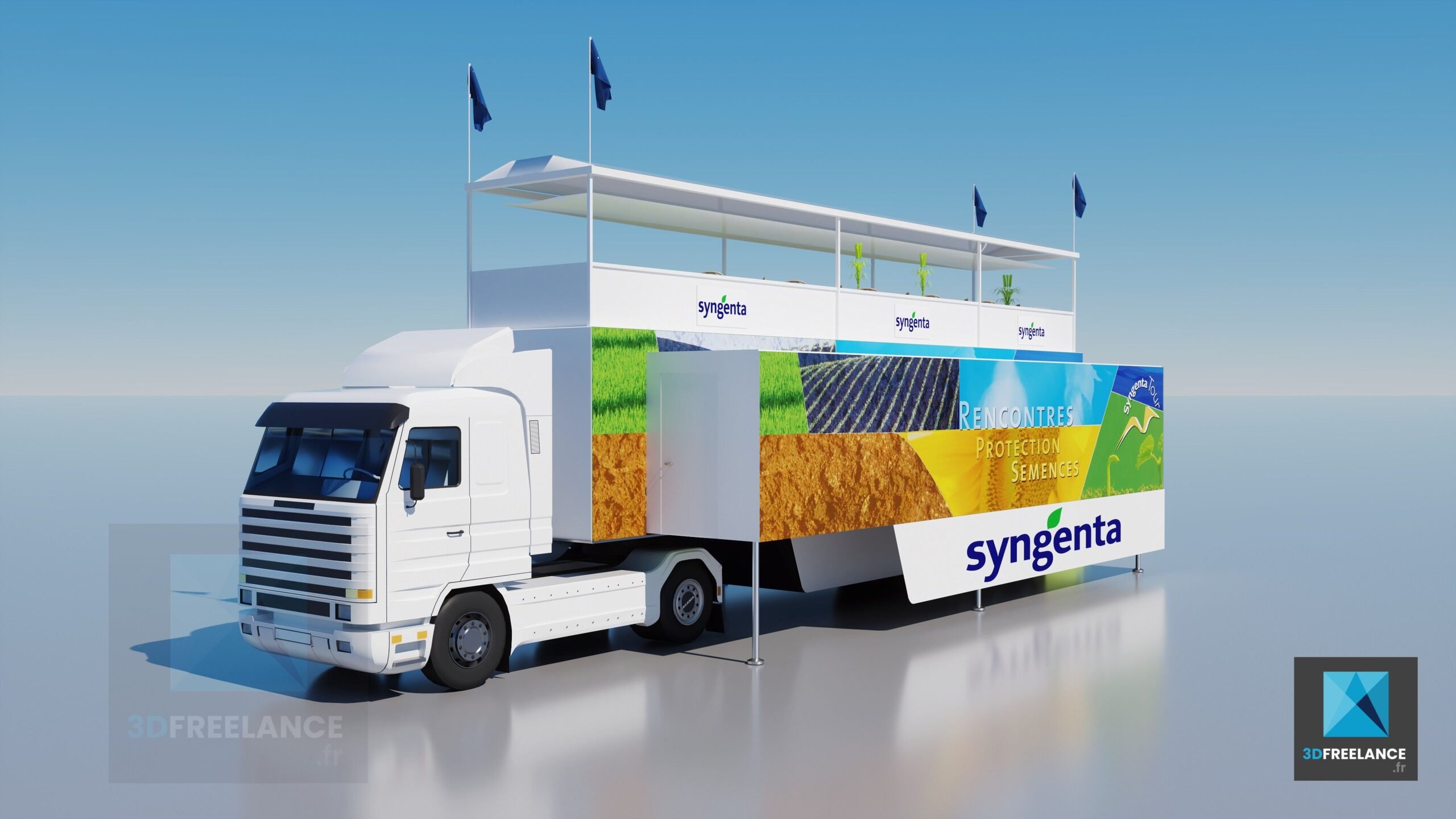 Création d’illustrations type rough d’un concept de camion évènementiel pour Syngenta. Camion mobile pour les évènements en infographie 3D. Exposition mobile sur le thème des semences.
