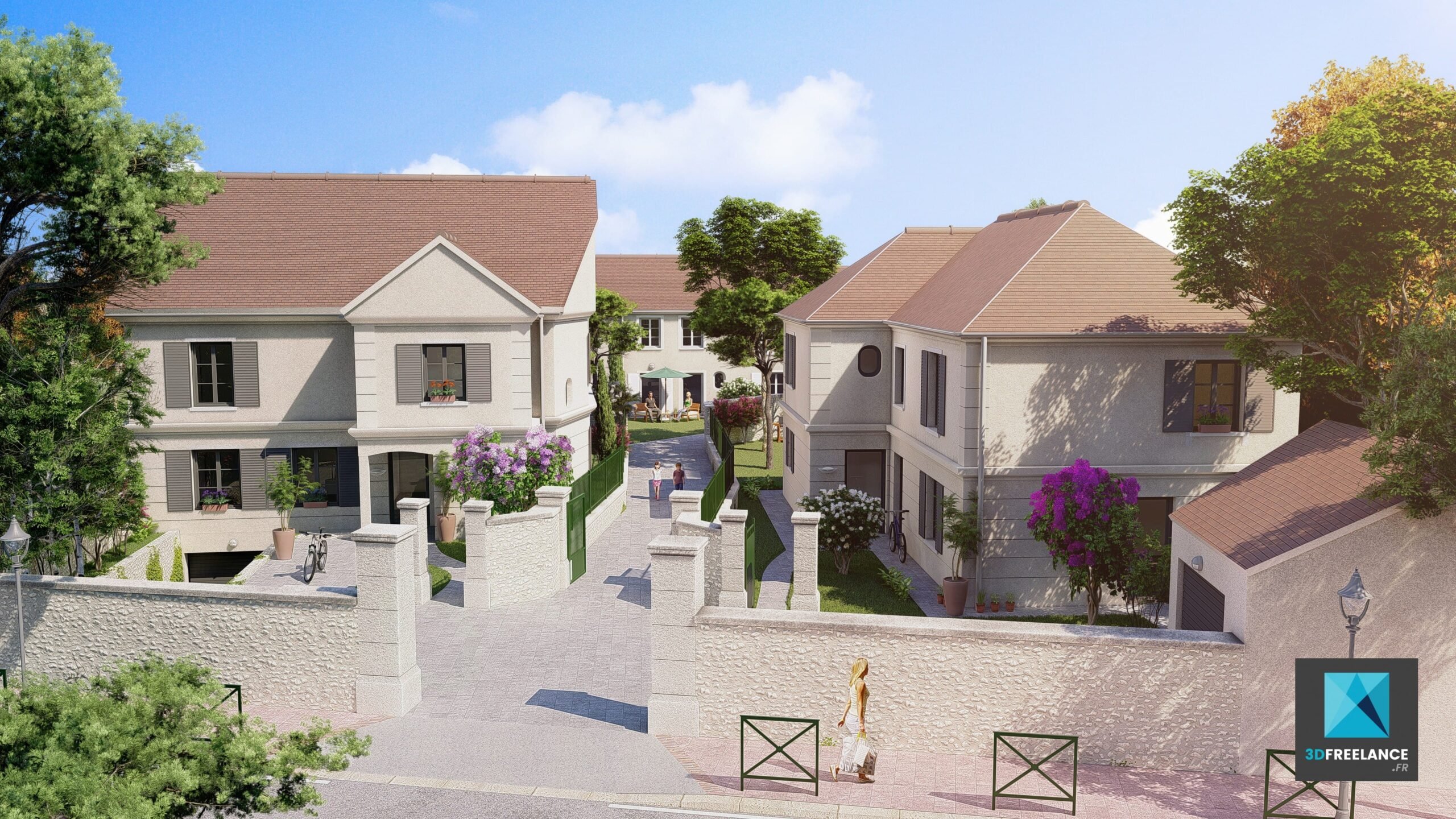 Création de visuels 3D d’une résidence. Réalisation du site internet et de la brochure.