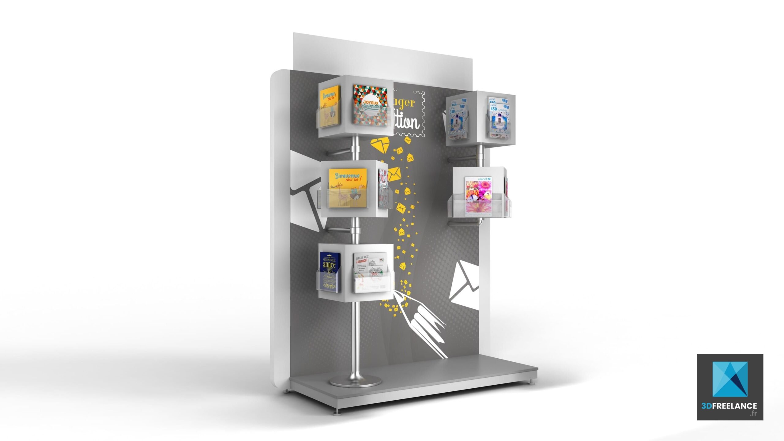 Design d’un présentoir pour les cartes de vœux pour La Poste dans l’optique d’un appel d’offre. Le projet a remporté l’appel d’offre.