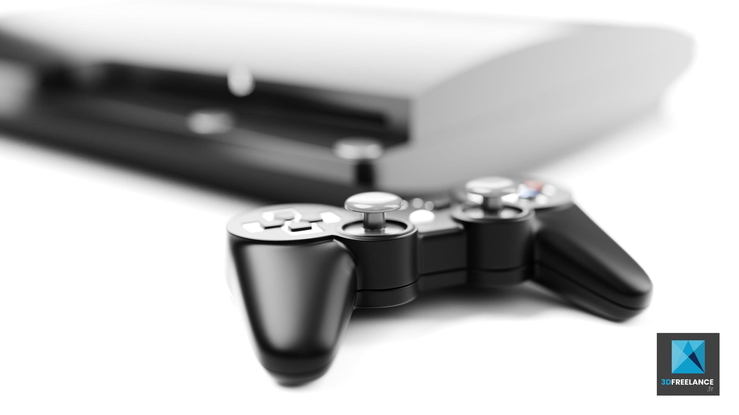 Tests de rendu 3D photoréalistes haut de gamme sur une console de jeu Sony Playstation. Ces images ont servi à mettre en place un process de rendu 3D pour des produits.