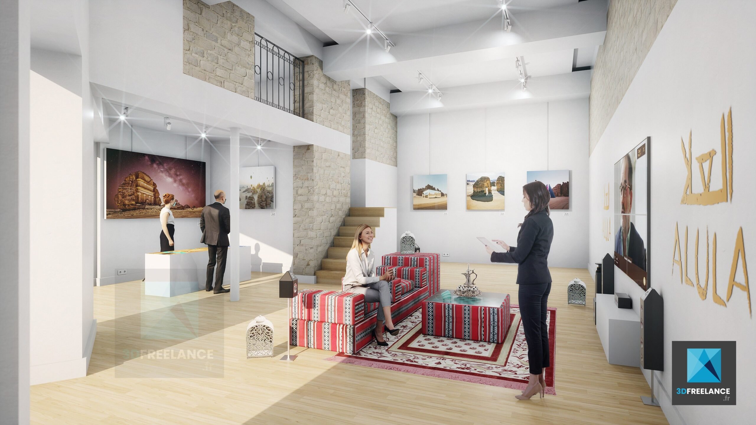 Dans le cadre de la présentation du concept d’une présentation presse par un client, j’ai créé un visuel qui a été utilisé comme illustration d’une slide powerpoint. Le format de l’illustration est de type rough, collage photo et 3D. Des propositions graphiques ont été faites afin d’atteindre une qualité de rendu haut de gamme. Ce visuel a été intégré dans une présentation envoyée au client. Conférence de presse dans une galerie d’art.