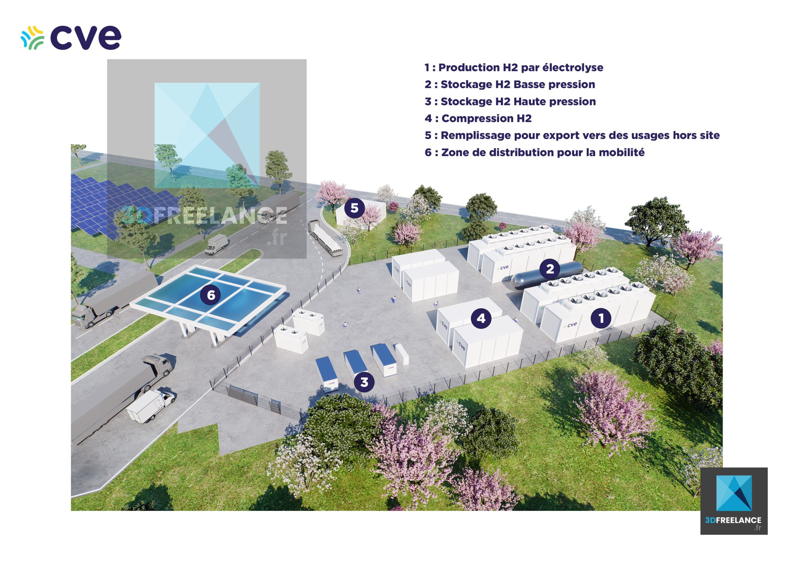 Je crée des modèles 3D détaillés pour les infrastructures électriques, y compris les réseaux de distribution, les sous-stations et les installations de production d’électricité. Ces schémas sont essentiels pour la planification, la maintenance et la sécurité des installations électriques.