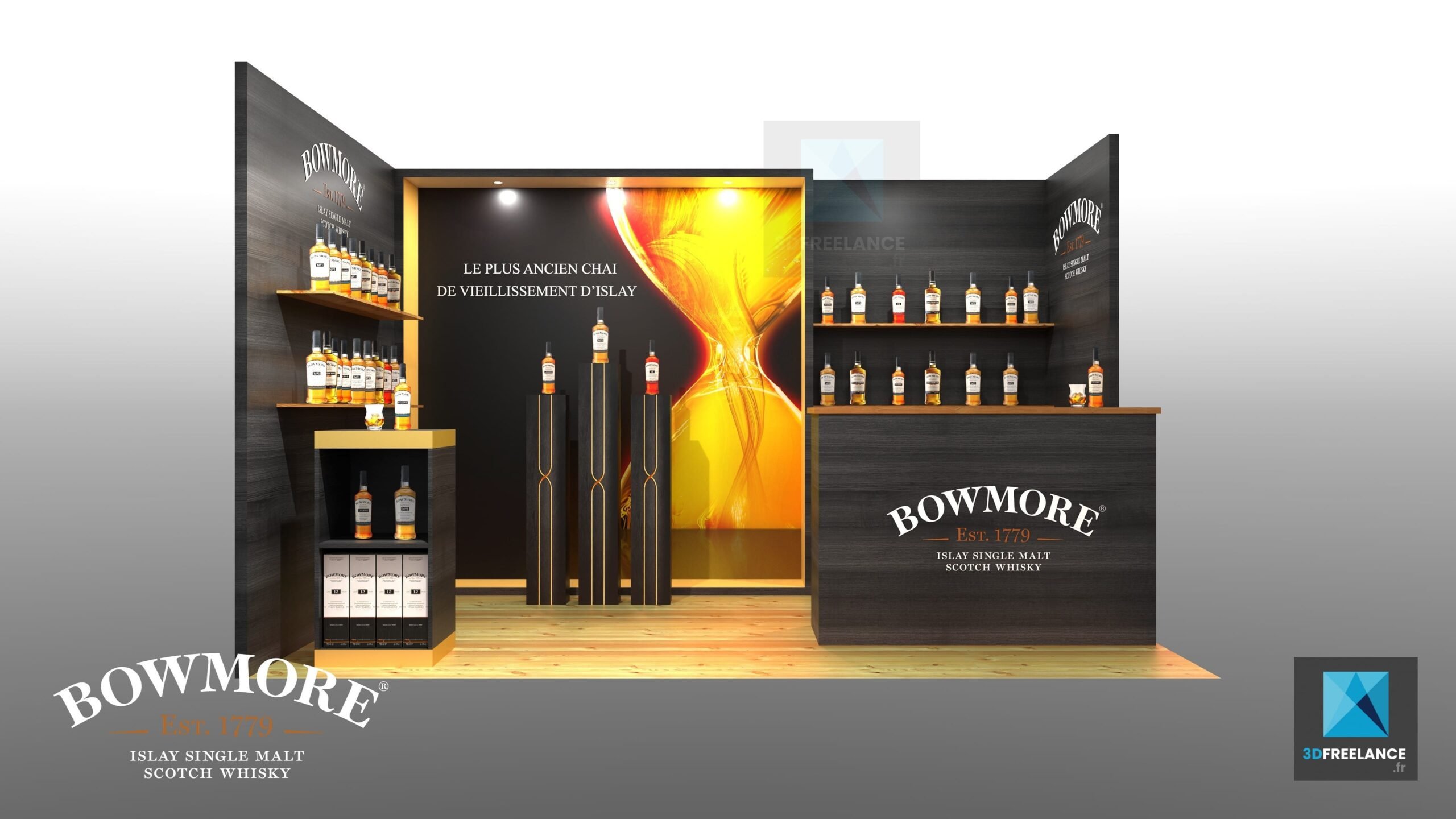 ClientBowmoreAgenceContre JFonctionDesigner de standServicesDesign de stand, création de perspectives 3DDate2019