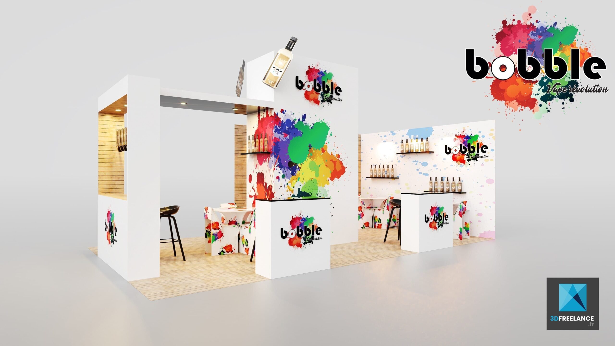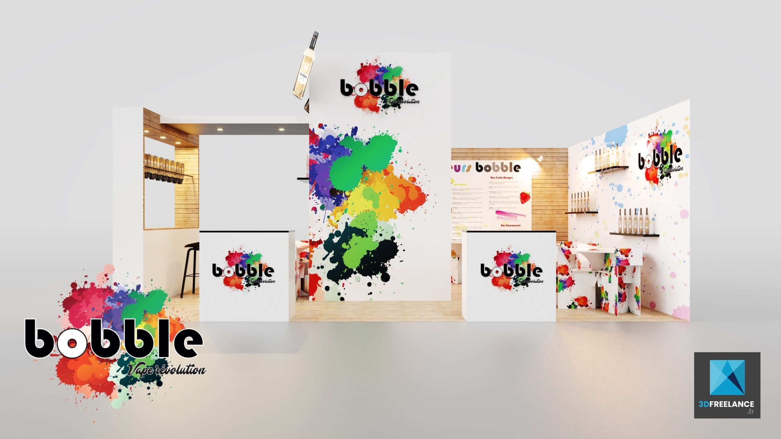 Création d’un concept de stand pour une marque qui fabrique des liquides pour les cigarettes électroniques. L’ambiance du stand est bar et dégustation. La superficie du stand est de 45m2. Stand de démonstration pour le vapotage et les Ecig.