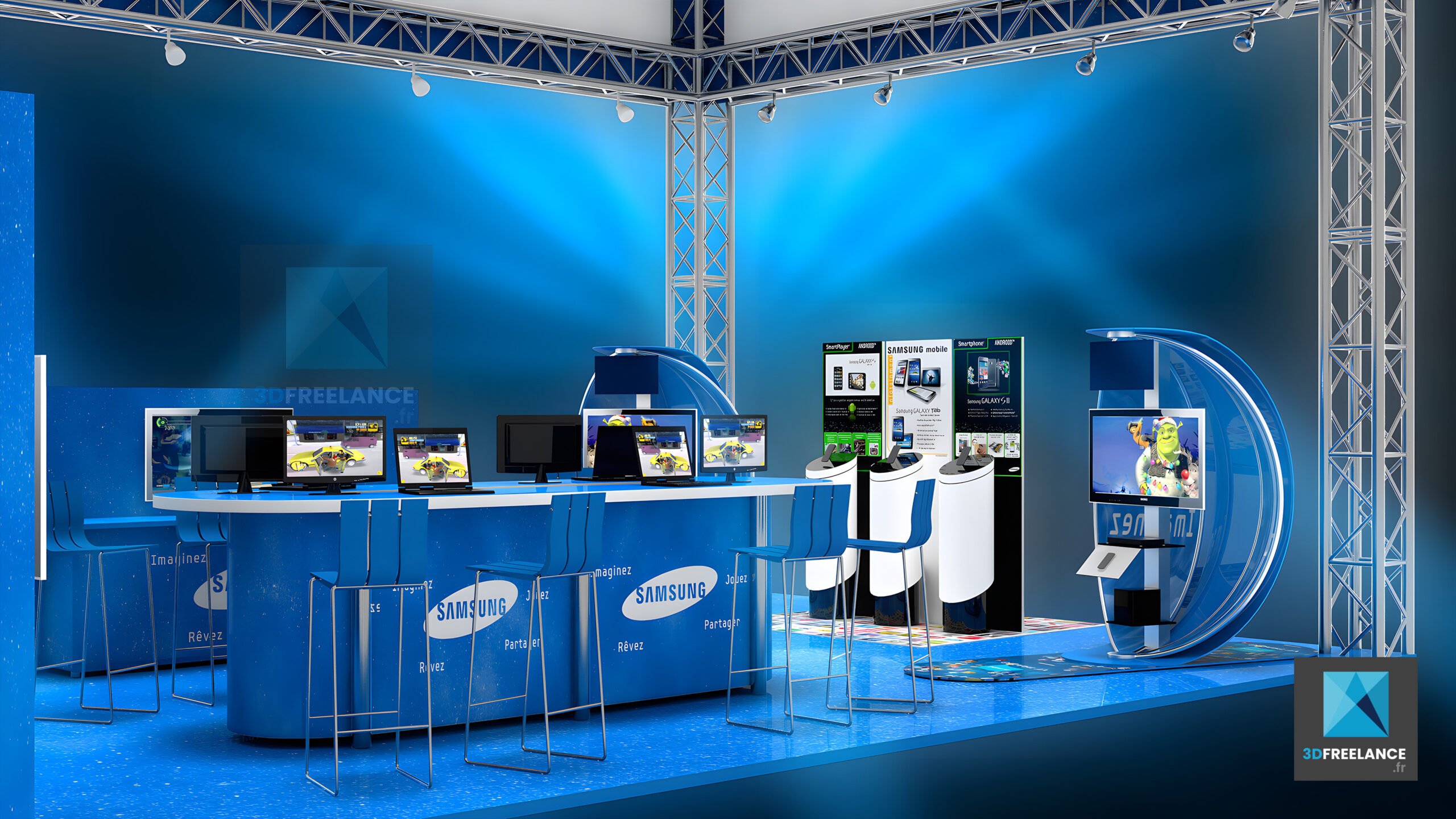 Création et agencement d’un stand pour Samsung au salon du jeu vidéo Comic Con Paris 2011. Travail sur le design complet d’un stand. Design du stand et création d’images 3D.
