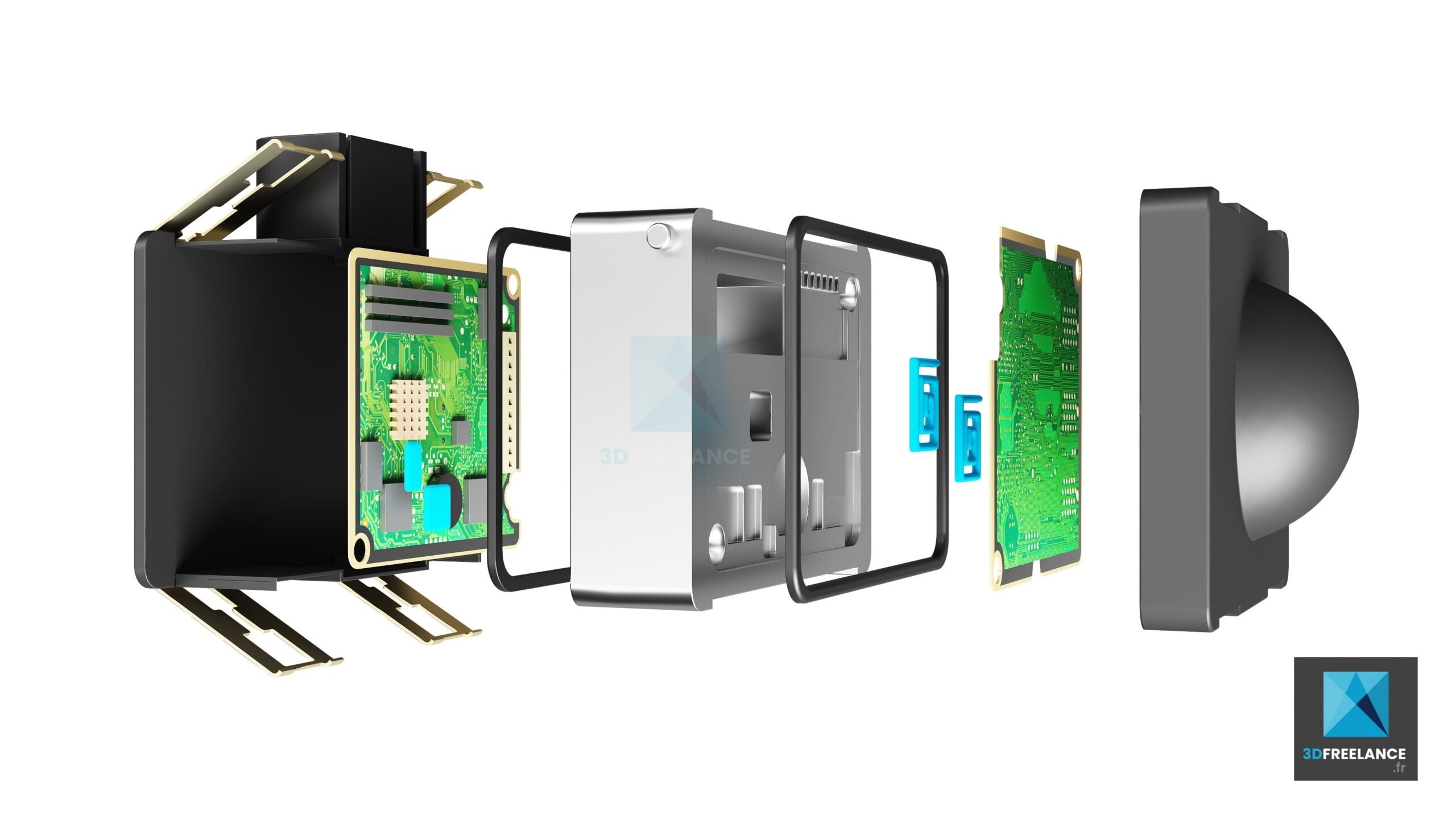 Réalisation d’une illustration technique et d’une vidéo 3D pour montrer l’intérieur d’un appareil électronique de type radar. Modélisation 3D de toutes les pièces et calcul d’une animation 3D. Visualisation des circuits électroniques et des joints thermiques.